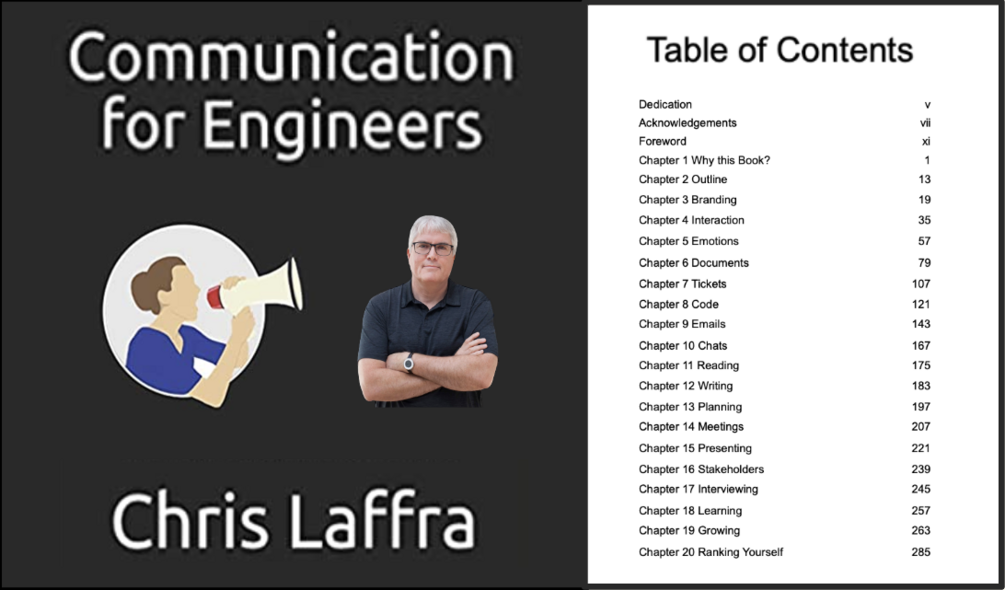 As an engineer, we care a lot about our code. It defines us. We study the programming languages we use in great detail. We become experts in the tools we deploy. We fight with other engineers who are not using the same editors we use. Education tracks for software developers focus on the development of technical skills. We learn how to write compilers. We learn multiple programming languages. However, "softer" skills get less attention. Examples of those softer skills are: how to collaborate, how to get consensus on an idea, how to articulate our thoughts, and how to listen to others.